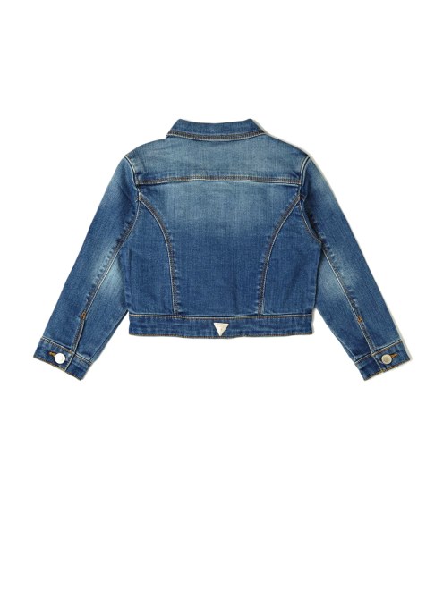 ¡conoce La Chaqueta De Mezclilla De Sus Sueños! Un Diseño Clásico Con Botones En La Parte Delantera Con Logotipo De Pedrería En La Parte Delantera Y Logotipo De Triángulo De Pedrería En La Parte Trasera, Además De Costuras En Contraste Y Bolsillos Delanteros De Parche.
