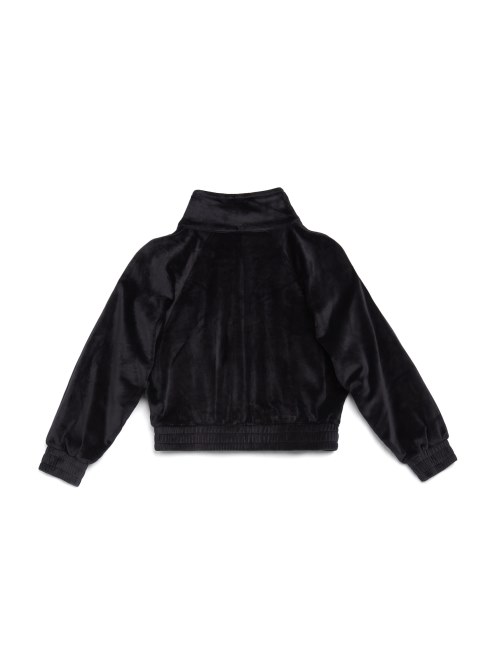 Una Alternativa Divertida Para Ella En El Clima Más Fresco. Esta Chaqueta De Terciopelo Tiene Cuello Alto, Bolsillos Con Cremallera, Un Logo De Pedrería En El Pecho, Mangas Largas, Ribete Fruncido Y Cierre Frontal Con Cremallera. Contiene Plástico Reciclado.
