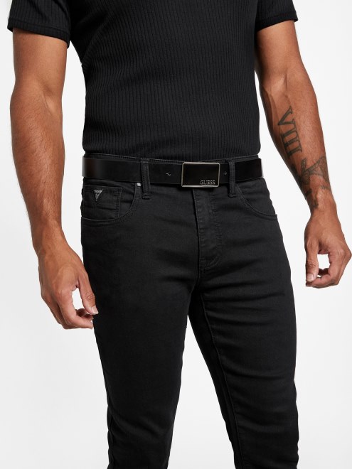 Cinturón Con Placa Del Logo Esmaltada Guess Negro