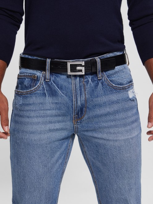 Cinturón Guess Negro Calabria Con Grabado De Cocodrilo