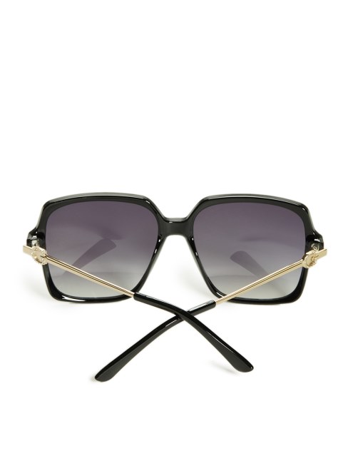 Termina Tu Look Con Estos Elegantes Anteojos De Sol Que Cuentan Con Marcos De Plástico Cuadrados De Gran Tamaño Y Patillas De Metal Con Un Detalle De Logotipo Adornado Con Pedrería.