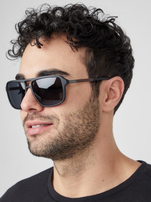 Perfectos Para Usar Con Un Casco O Sombrero, Estos Lentes De Sol Navigator Cuentan Con Marcos Rectangulares, Una Barra Para La Frente Y Patillas De Metal Con El Logo.