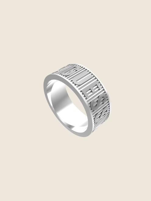 elegante Anillo Plateado Con Un Diseño De Logotipo Grabado