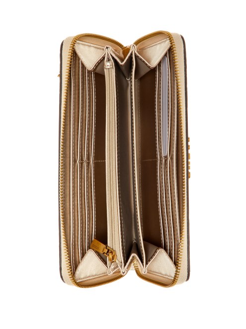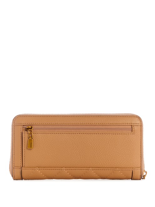 Una Adición Elegante A Cualquier Bolso. Una Cartera Grande En Piel Sintética Granulada Cuenta Con Un Cierre De Cremallera Y Un Emblema Con El Logotipo.