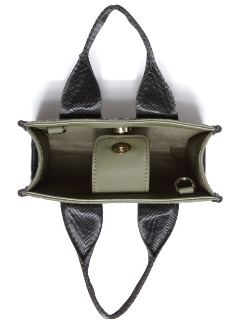 Minibolso Tote Con Logotipo Grabado En Toda La Prenda, Asas Superiores De Lona Tejida Con Cinta Con El Logotipo Y Correa Cruzada Extraíble. Cierre Con Botón A Presión Magnético.