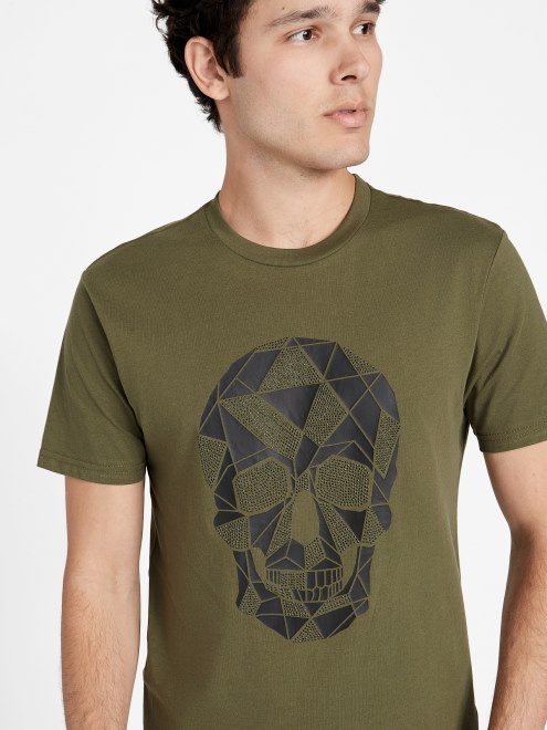 Mejora Tu Estilo Con Esta Camiseta Gráfica Que Presenta Un Diseño Geométrico De Calavera Y Mangas Cortas. Hecho Con Fibra De Algodón.