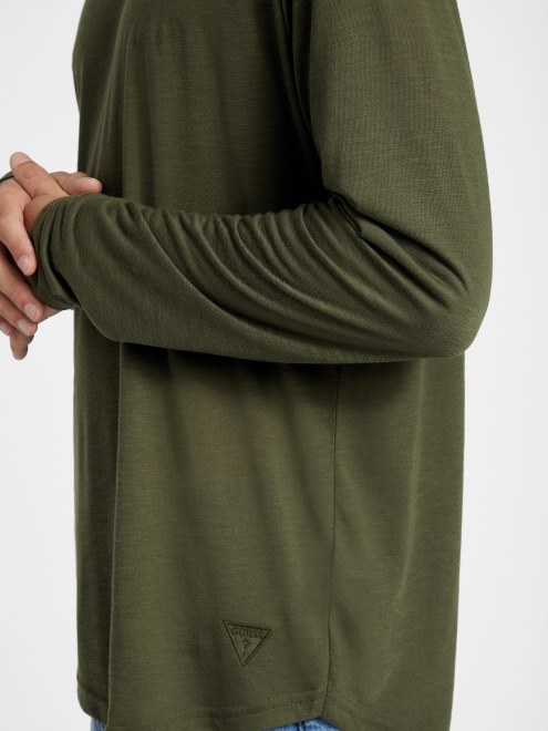Para Tu Uso Diario. Playera De Cuello Redondo Con Mangas Largas Y Logotipo De Triángulo Bordado En El Dobladillo.