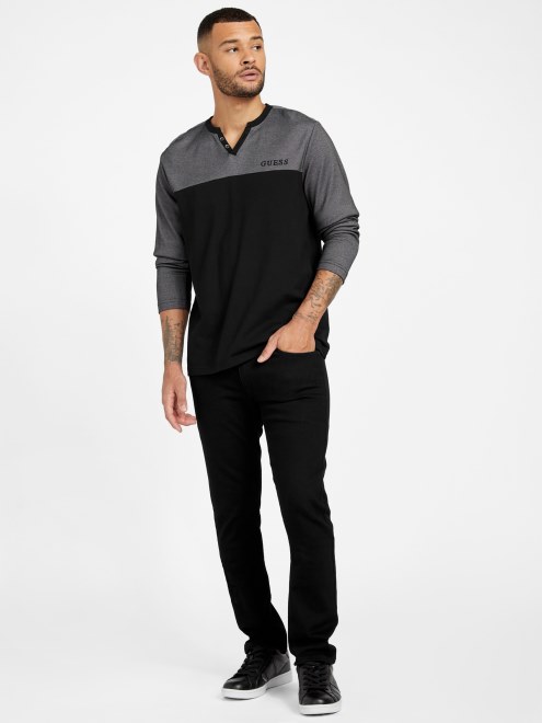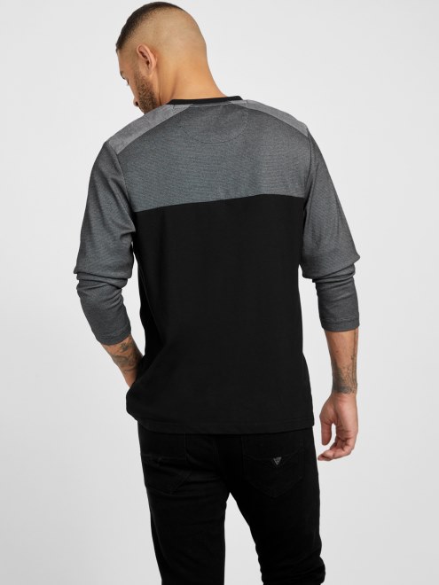 Camiseta De Manga Larga Con Cuello En V De Guess Harman Negro Azabache