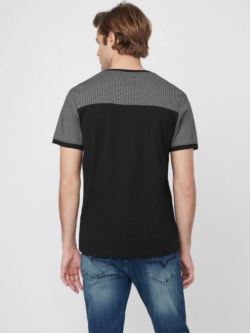 Para Tus Días Casuales, Esta Sencilla Camiseta Tiene Una Abertura En V En El Cuello Redondo Y Un Panel En Contraste A Lo Largo De Los Hombros Y Las Mangas Cortas.