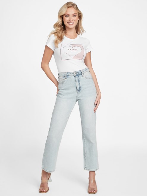 Esta Sencilla Camiseta De Manga Corta, Un Elemento Básico Del Armario Al Alcance De La Mano, Presenta Un Escote Redondo Y Un Diseño Gráfico De Corazón Metálico En La Parte Delantera Con El Texto Del Logotipo En El Interior. Utiliza Fibra De Algodón Orgánico.