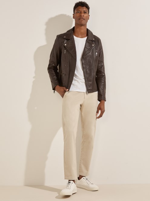 Chamarra De Motociclista Clásica De Cuero Con Detalles Moteros Tradicionales Que Incluyen Cremalleras Frontales Y Laterales. Rematado Con Mangas Acentuadas Con Cremallera, Cuello Con Muescas Con Broches Y Cierre Frontal Con Cremallera.