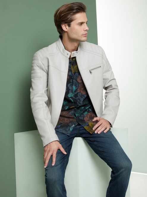 Inicio| Hombres| Ropa| Chaquetas| Chaqueta Biker De Cuero Sintetico Vintage Blanca De Guess Daniel