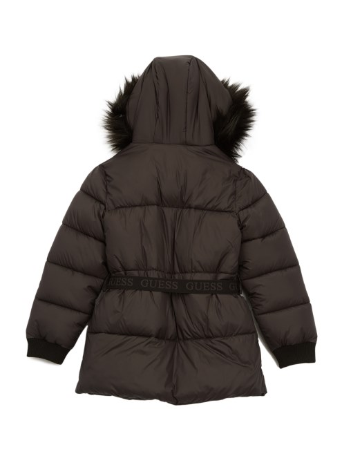 Completa Su Look Para El Clima Frío Con Este Cálido Abrigo Acolchado Con Capucha Adjunta Con Forro Y Ribete De Piel Sintética, Cintura Con Cinturón Y Cierre Con Cremallera Y Botones A Presión.