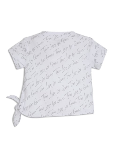 Esta Camiseta De Manga Corta Con Cuello Redondo Para Mujer, Confeccionada Con Un Estampado Integral Del Logotipo, Está Diseñada Con Un Detalle Anudado En El Costado Y Un Gráfico De Corazón Con El Logotipo.