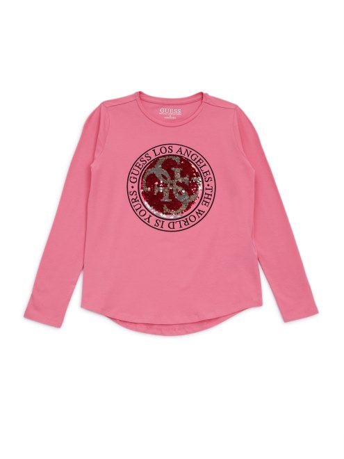Camiseta De Manga Larga Con Lentejuelas Flip (7-16) Guess Nebula Rosa