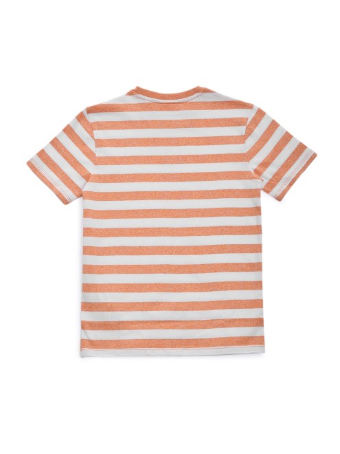 Tu Pequeño Ahora Puede Vestirse Como Tú Con Esta Camiseta De Punto Con Estampado De Rayas, Logotipo Bordado, Mangas Cortas Y Cuello Redondo.