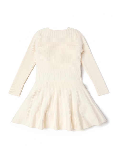 Construido Con Fibras Renovables A Base De Madera, Este Adorable Vestido Suéter Presenta Cuello Redondo, Mangas Largas Y Una Falda Midi Plisada.