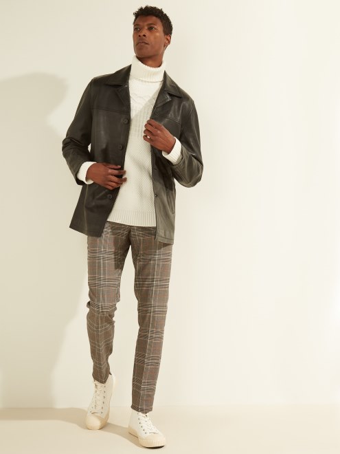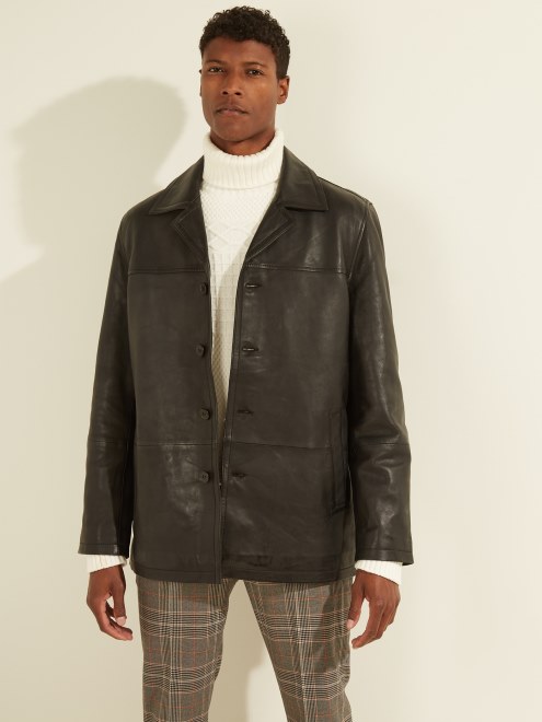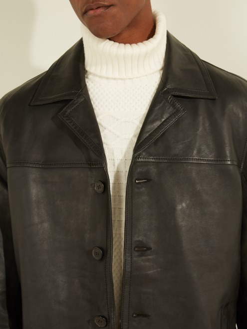 Un Abrigo Estilo Vintage Confeccionado En Una Construcción De Cuero Genuino Suave Como La Mantequilla. Diseñado Con Un Cuello Con Muescas, Cierres Frontales Con Botones Y Bolsillos Laterales Abiertos.