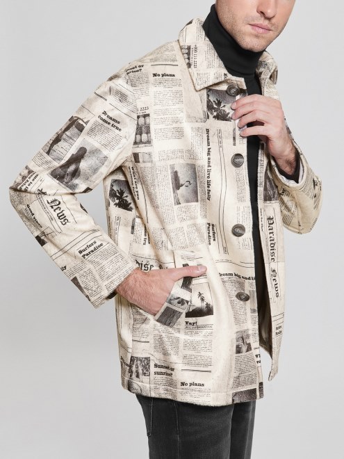Abrigo De Piel Sintetica Con Estampado De Periodico Aop