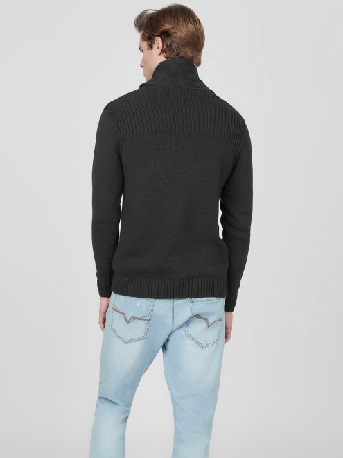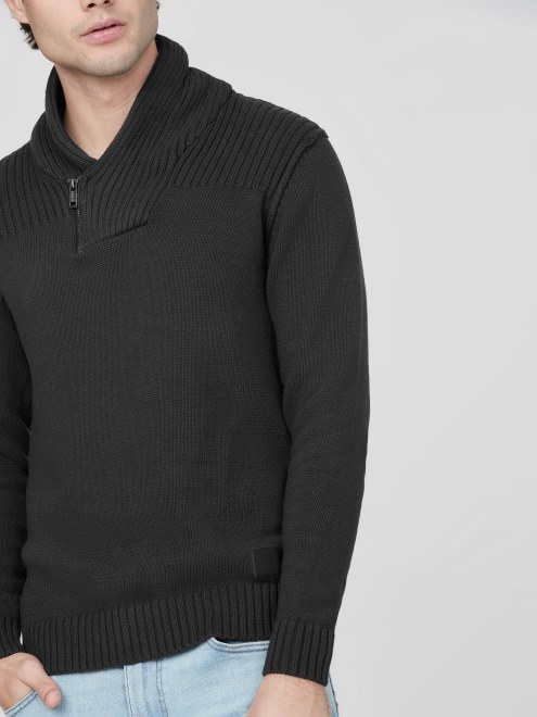 Manténgase Cómodo E Informal Con Este Suéter Con Cuello Esmoquin, Cierre De Media Cremallera Y Puños Acanalados.