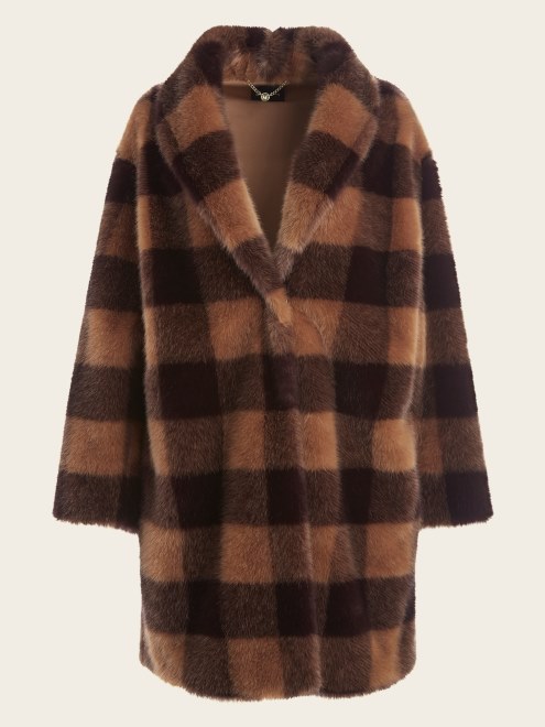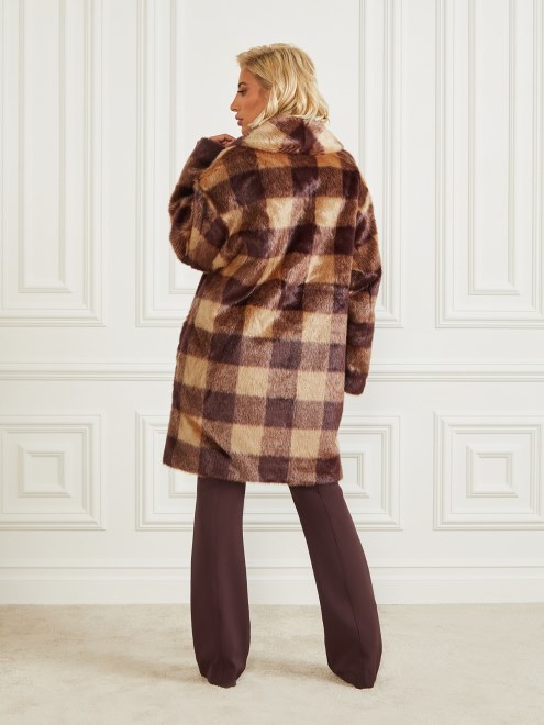 Brilla Con Tus Verdaderos Colores En Este Abrigo De Piel Sintética. Con Un Llamativo Diseño A Cuadros, Cuello Alzado Con Escote En V Y Amplios Bolsillos Dobles.