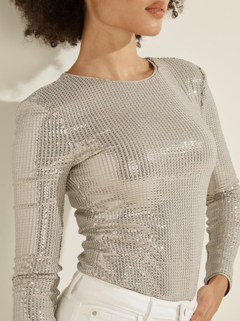 Body De Lentejuelas Guess Ludovica Combo De Lentejuelas Plateadas