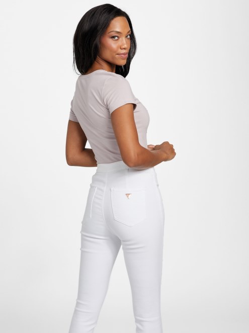 Brillarás Con Esta Camiseta De Punto Con Un Logotipo En La Parte Delantera Con Pedrería De Varios Tamaños, Escote Redondo Y Mangas Cortas.