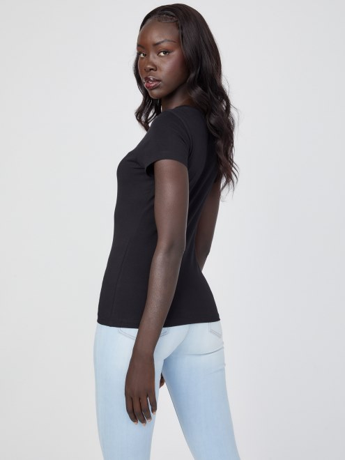 Busca Un Clásico Actualizado. Esta Camiseta De Manga Corta Con Cuello Redondo Presenta Un Diseño De Logotipo Triangular Adornado Con Pedrería En La Parte Delantera. Contiene Fibra De Algodón Orgánico.