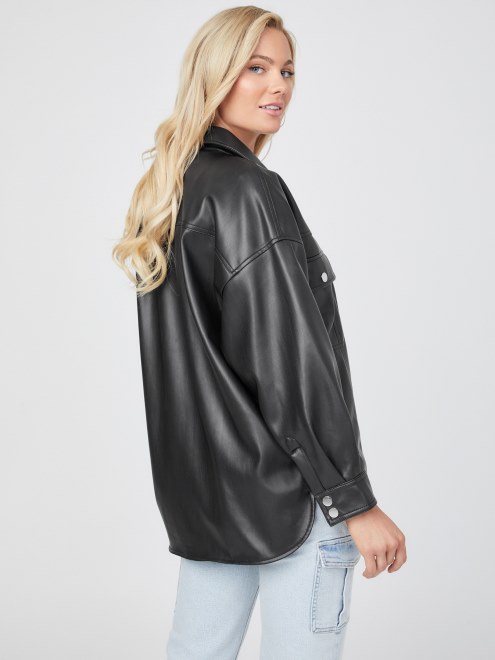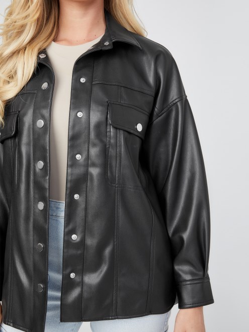 Alcance Un Borde Moderno. Esta Chaqueta De Piel Sintética Está Diseñada Con Una Silueta Relajada Con Hombros Caídos, Cuello Doblado Y Dos Bolsillos En El Pecho. Cierres Frontales Con Botones A Presion.