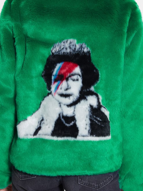 Termina Tu Look Con Una Nota Suave, Esta Chaqueta De Piel Sintética Tiene Una Capucha Adjunta, Un Detalle De Logotipo Grabado, Cierre Frontal Con Cremallera Y Un Diseño Gráfico Majestuoso En La Parte Posterior.