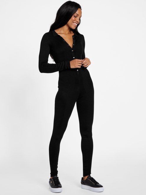 Un Nuevo Tejido Para Conocer, Este Mono De Suéter Está Diseñado En Una Silueta Ceñida Al Cuerpo Con Mangas Largas Y Piernas Delgadas. Rematado Por Un Cuello Plegado Con Cierre De Botones A Presion En La Parte Delantera.