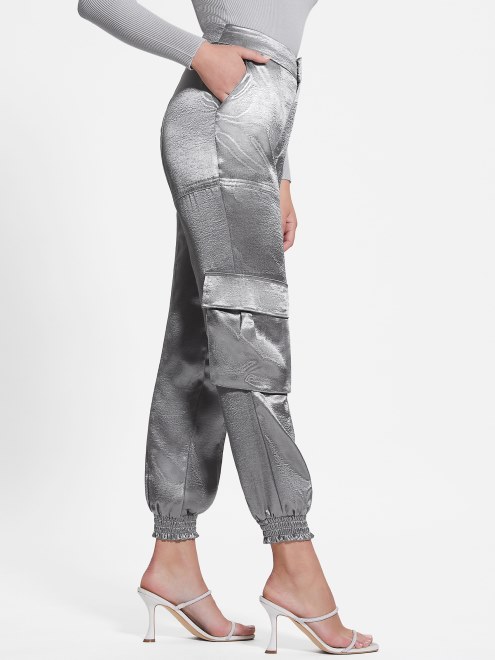 La última Adición De Glamour. Estos Pantalones De Satén Tejido Cuentan Con Bolsillos Cargo Laterales, Bolsillos De Parche, Bragueta Con Cremallera Francesa Y Puños Fruncidos. Contiene Plástico Reciclado.