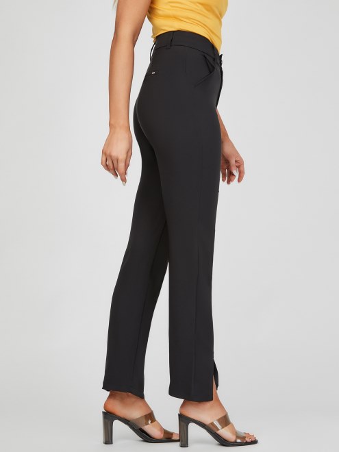 Con Sofisticación Y Elegancia Retro, Estos Pantalones Son Imprescindibles Para Tus Viajes De Negocios O Unas Vacaciones En Una Ciudad Histórica. Con Cintura Alta, Bolsillos, Pernera Recta Y Abertura En La Parte Inferior.