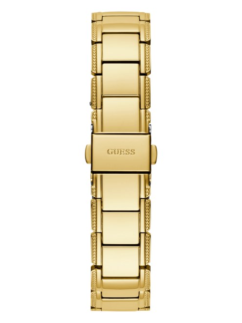 La Elegancia Y La Intriga Chocan En Este Reloj Dorado Que Presenta Un Intrincado Arreglo Floral En La Esfera Analógica Perforada. Completado Con Detalles De Diamantes En La Caja Redonda Y El Brazalete De Eslabones.