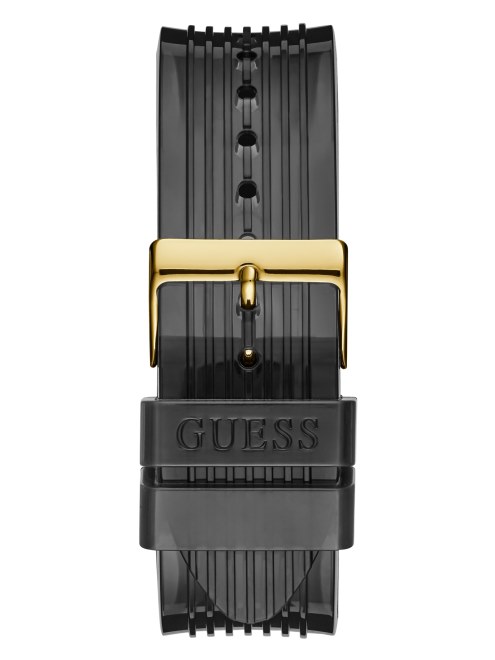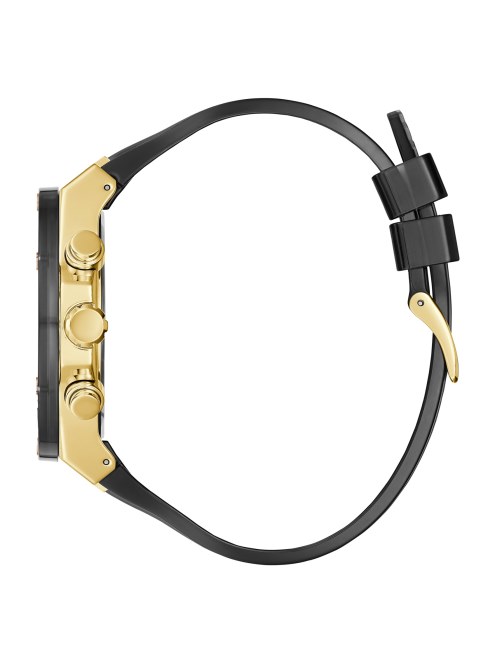 Causa Impacto Con Este Estilo Atrevido E Hiperactivo. Este Reloj Multifuncional Cuenta Con Un Aspecto De Cronógrafo, Una Esfera De Rayos De Sol, Una Banda De Silicona Y Un Bisel Contrastante Dorado Y Negro Tonal.