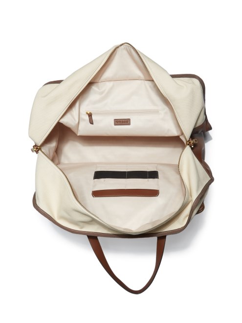 Confeccionada En Una Tela De Lona Suave Con Ribete De Piel Sintética, Esta Bolsa De Trabajo Es Un Clásico Renovado. Cuenta Con Un Compartimento Principal Con Bolsillos Interiores Para Organización Y Dos Bolsillos Exteriores Con Cremallera En La Parte Delantera. Asas Superiores Y Bandolera Desmontable.