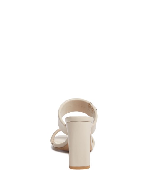 Deslizarse Con Elegancia. Estas Sandalias Sin Cordones Cuentan Con Un Diseño De Doble Banda, Puntera Cuadrada Abierta Y Tacones Finos.