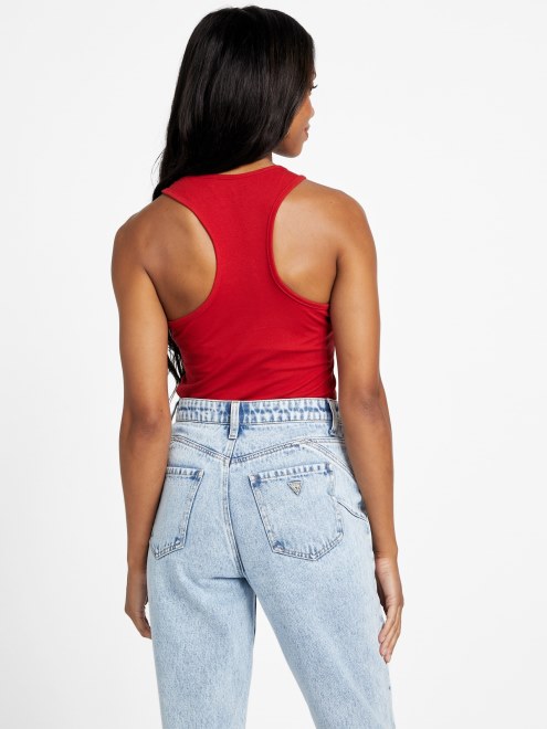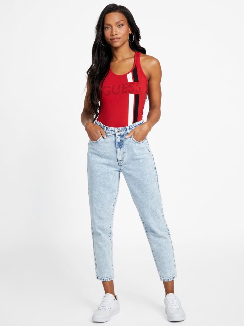 Muestra Tu Lado Deportivo Con Esta Camiseta Sin Mangas Con Espalda Cruzada Que Presenta Un Cuello Redondo Y Un Diseño A Rayas Con Un Logotipo De Pedrería En La Parte Delantera. Contiene Fibra De Algodón Orgánico.