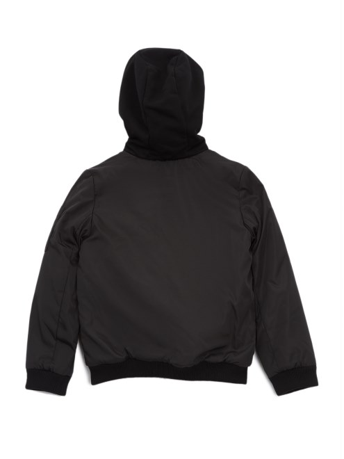 Para Su Futuro Piloto. Esta Chaqueta De Aviador De Vinilo Tiene Una Capucha De Punto, Logo En El Pecho Y Bolsillo Con Cremallera, Bolsillos Delanteros Con Botones A Presión, Bolsillo Con Cremallera En La Manga Larga, Ribete Acanalado Y Cierre Con Cremallera.