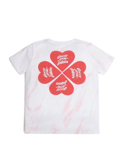 Atrevida Camiseta De Punto Para él. Con Estampado De Mármol Por Toda La Prenda, Logotipo En El Pecho, Gráfico De Corazón En La Espalda, Cuello Redondo Y Mangas Cortas.