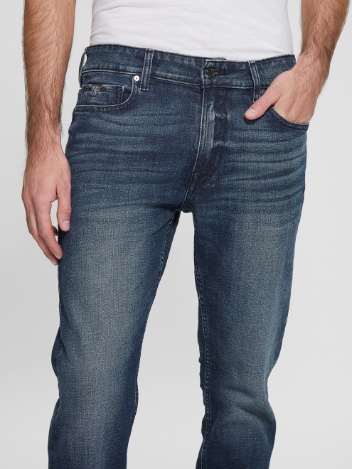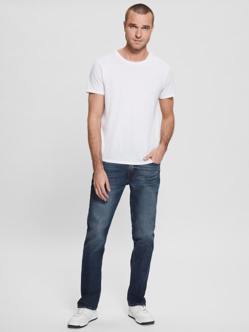Mezclilla Clásica De Talle Medio Con Bigotes, Desteñido Y Pernera Recta Con Un Calce Regular Que Permite Un Uso Más Espacioso.