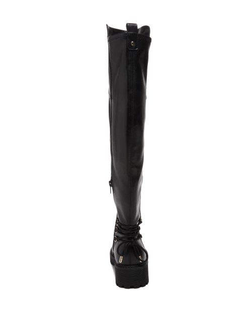 Haz Los Movimientos Correctos Y Usa Estas Botas Altas Para Tu Próxima Escapada. Con Una Construcción De Piel Sintética, Detalles En Tonos Dorados, Cordones En La Parte Posterior Y Suelas Gruesas.
